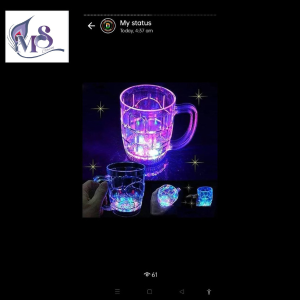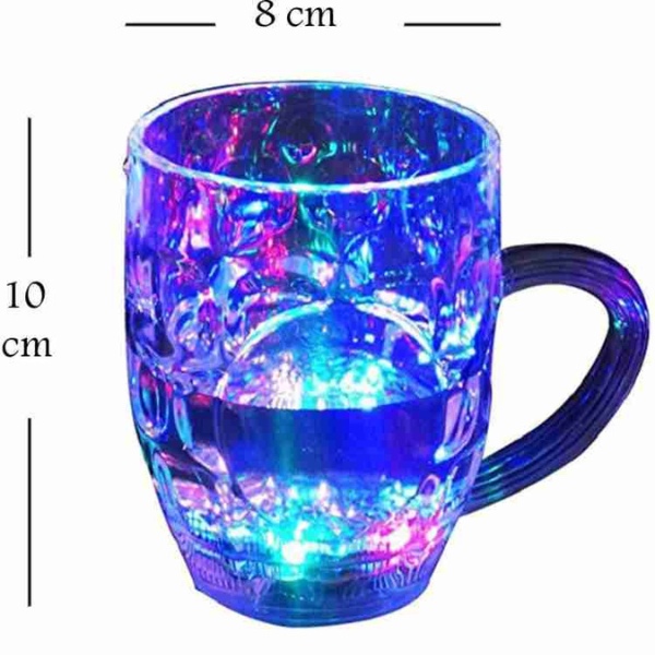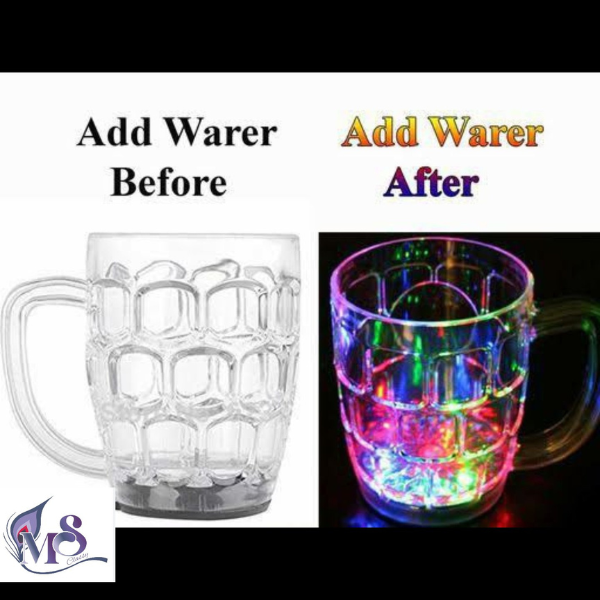 MSclassy LED Flashing 7 Colors Changing Liquid Activated Mug This cup is environmental protection transparent shine cup when pour into liquid (water, beverage, beer, etc.), it will light up and flash immediately, very magical, suitable for celebrate, party, bars, gifts and so on. Water induction cup, if no water in the cup, it will not light up. Suitable for: bar, discos, restaurants, leisure, party, friend’s gifts, etc. Power: button cell X 2 (included). To Replace Batteries: Unscrew the battery compartment door located on the bottom of the base, place new batteries in the battery compartment and screw on the battery door. Bright colorful and fun beverage glass with assorted colors flashing in the bottom. Attract the attention of everyone at the party with this fun, bright, and colorful flashing beer mug.