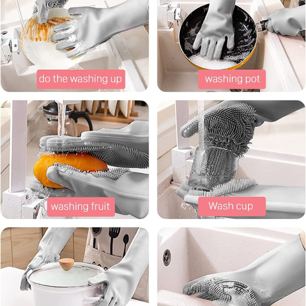 MSclassy Gloves Magic Silicone Dish Washing Gloves, Silicon Cleaning Gloves, Silicon Hand Gloves for Kitchen Dishwashing and Pet Grooming, Great for Washing Dish, Car, Bathroom (Multicolour, 1 Pair)